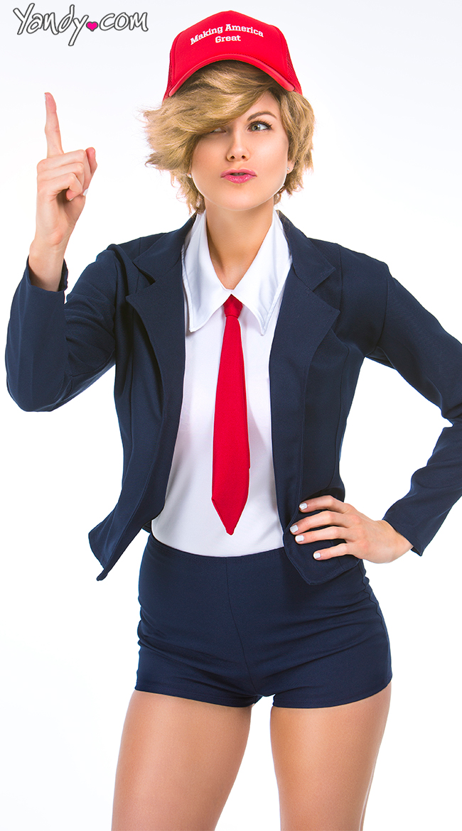 I have a feeling there are going to be SOOO many Donald Trumps out there this weekend. Do me a favor, if you see someone dressed as Donald Trump this Halloween, punch them in the nuts. Be like, “Oh I thought you were really him!” And if you see a girl dressed like this, punch her in the tit. And if any of you are going as Donald Trump this Halloween, look yourself in the mirror, straighten out your terrible wig, put on your stupid red hat, button up your fucking blue blazer and then punch yourself squarely in the nuts.