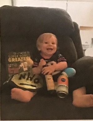 Kid Ranking: Very cute kid, who will one day grow up to smash those beers together and chug them like Stone Cold and her Dad will have never been prouder or more depressed at the same time.