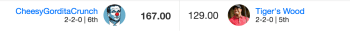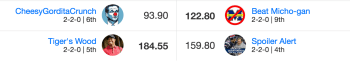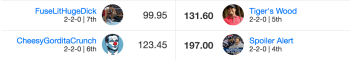 How the mighty have fallen. Buckets was second in the PowerRanks two weeks in a row. He scored 155 points in Week 1 and 141 in Week 2. Now, he’s lost his last 2 in a row, and is only scoring an average of 111 points. Another loss could drop him in the bottom 3 of the PowerRankings.