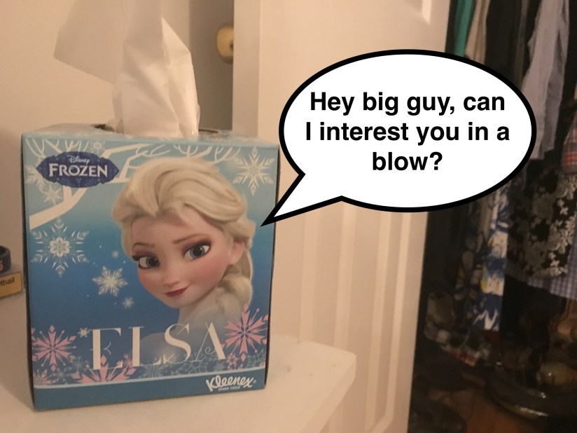 Awww does somebody have the sniffows. Yes and it’s super fucking annoying. Where does all this goddamn snot come from? It never fucking stops. And then after blowing your nose for 45 minutes straight, you finally get everything out and you can breath. What’s that smell? I think I can smell… is it hot dogs? I never thought I’d be so happy to smell hot dogs! Then you sneeze and the floodgates open up all over again.