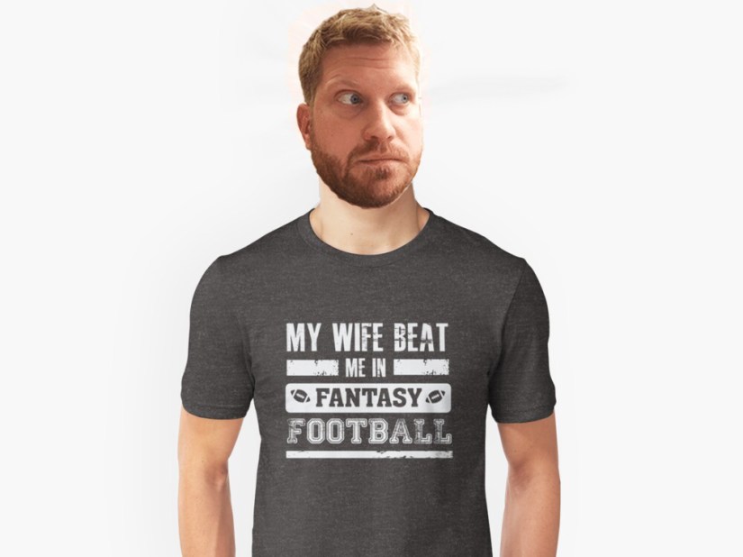 There’s also one about the loser having to wear a shirt that says “My Significant Other Is Better At Fantasy Football Than I Am.” To which I say, save your money and go out on a date. I’m sure your girlfriend is going to be really excited that you now own ANOTHER T-shirt.