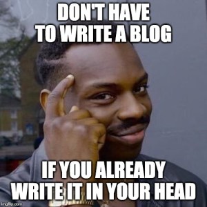 So, stuff like that. But this year, I’ve been trying to be more diligent about writing down ideas for future blogs. Last year, part of the reason I didn’t blog as much, was I didn’t always have an idea to write about, and even if I did, I didn’t always have the time to write about it. So I thought that if I kept track of ideas for blogs ahead of time, and I didn’t have any ideas, I could just grab something from the list. Plus, since I had a running list that I was always looking at, these were ideas I’d already thought about. It was basically like that meme: